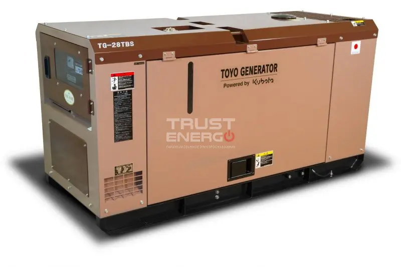 Дизельный генератор Toyo TG-28TBS с АВР номинальной мощностью 16 кВт с двигателем Kubota - отличный электроагрегат демонстрирующий уверенный приём нагрузки как резервный источник питания, так и основной.