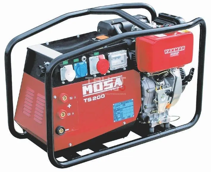 Сварочный генератор Mosa TS 200 DES/CF номинальной мощностью 5 кВт с двигателем Yanmar L 100 AE - отличный сварочный электроагрегат демонстрирующий уверенный приём нагрузки как резервный источник питания, так и основной с функцией сварки.