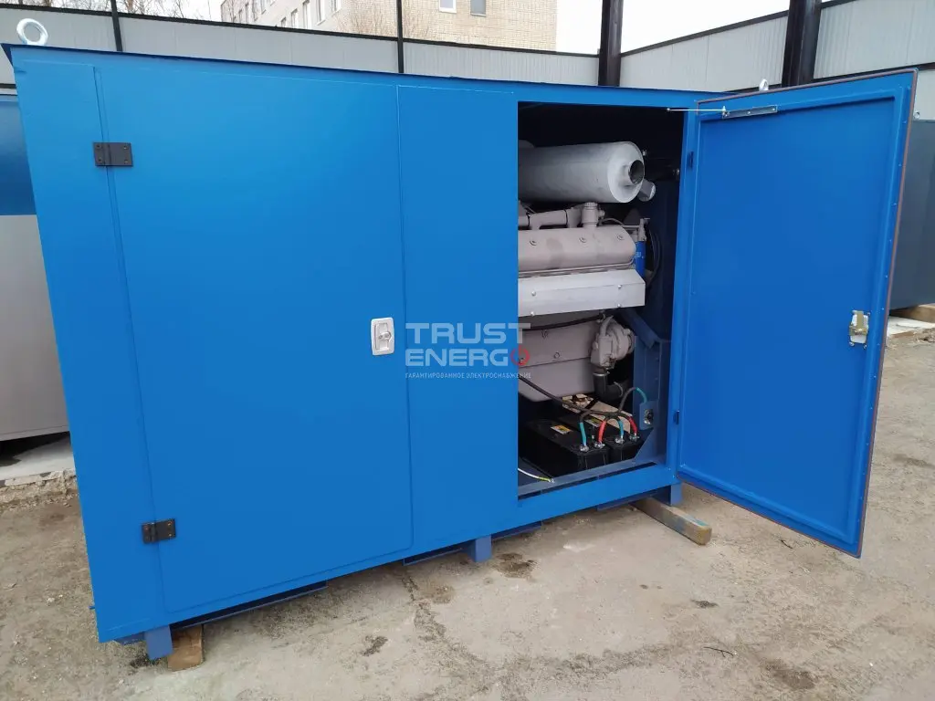 Комплектация: В кожухе исполнение, двигатель ЯМЗ 238М2-45, топливо Дизель, номинальная мощность (Prime power) 100 кВт, кол-во фаз 3, напряжение 230/400 B.